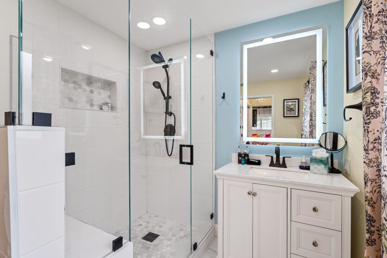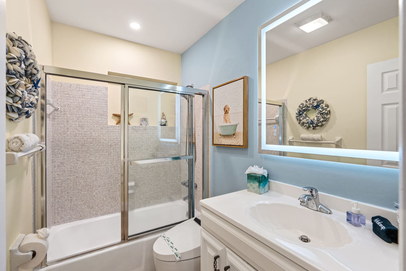 Both bathrooms are updated with high-tech smart bidet toilets β a detail guests call out in reviews every time. The primary suite has its own ensuite bathroom. The second full bathroom serves the remaining three bedrooms.