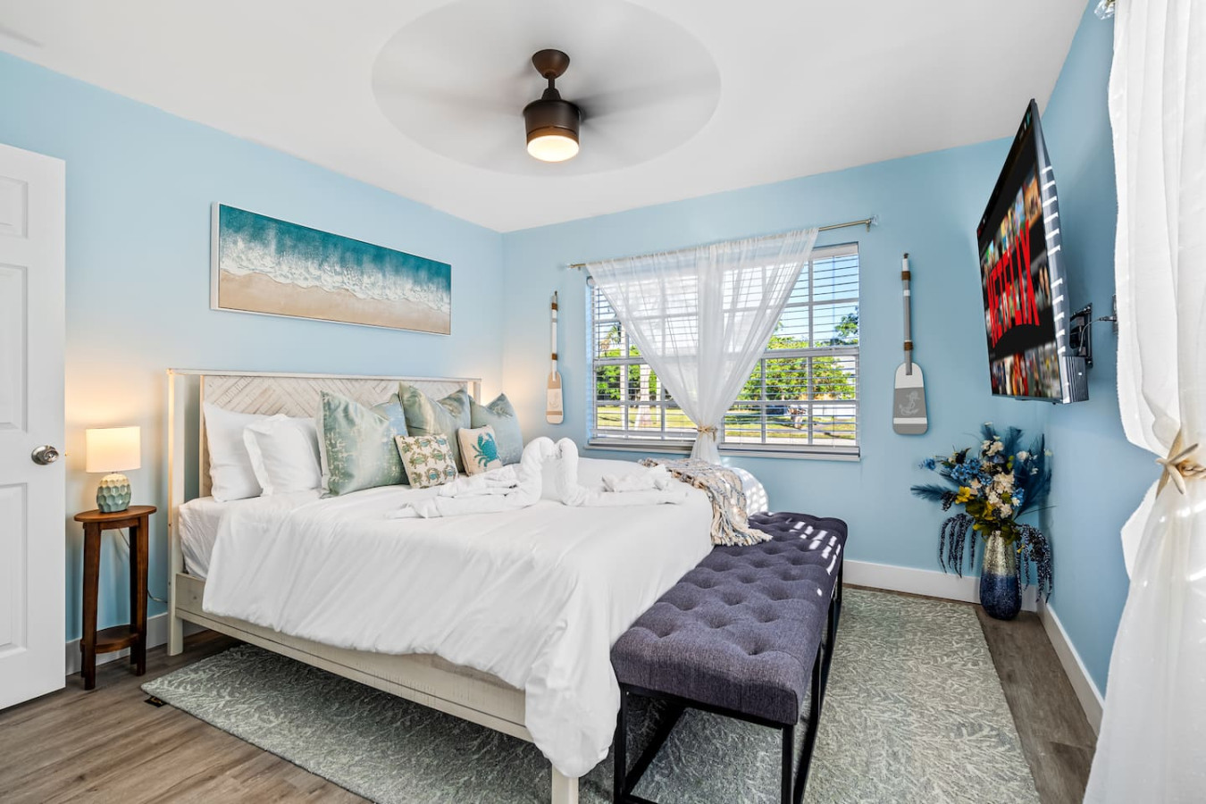 Primary suite β King bed, ensuite bathroom, 55" Smart TV
