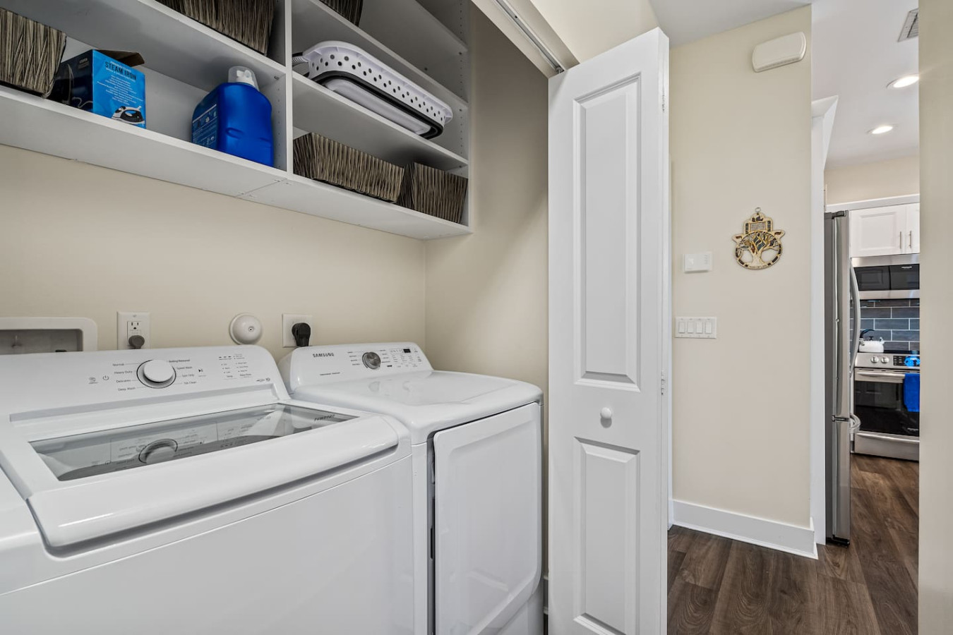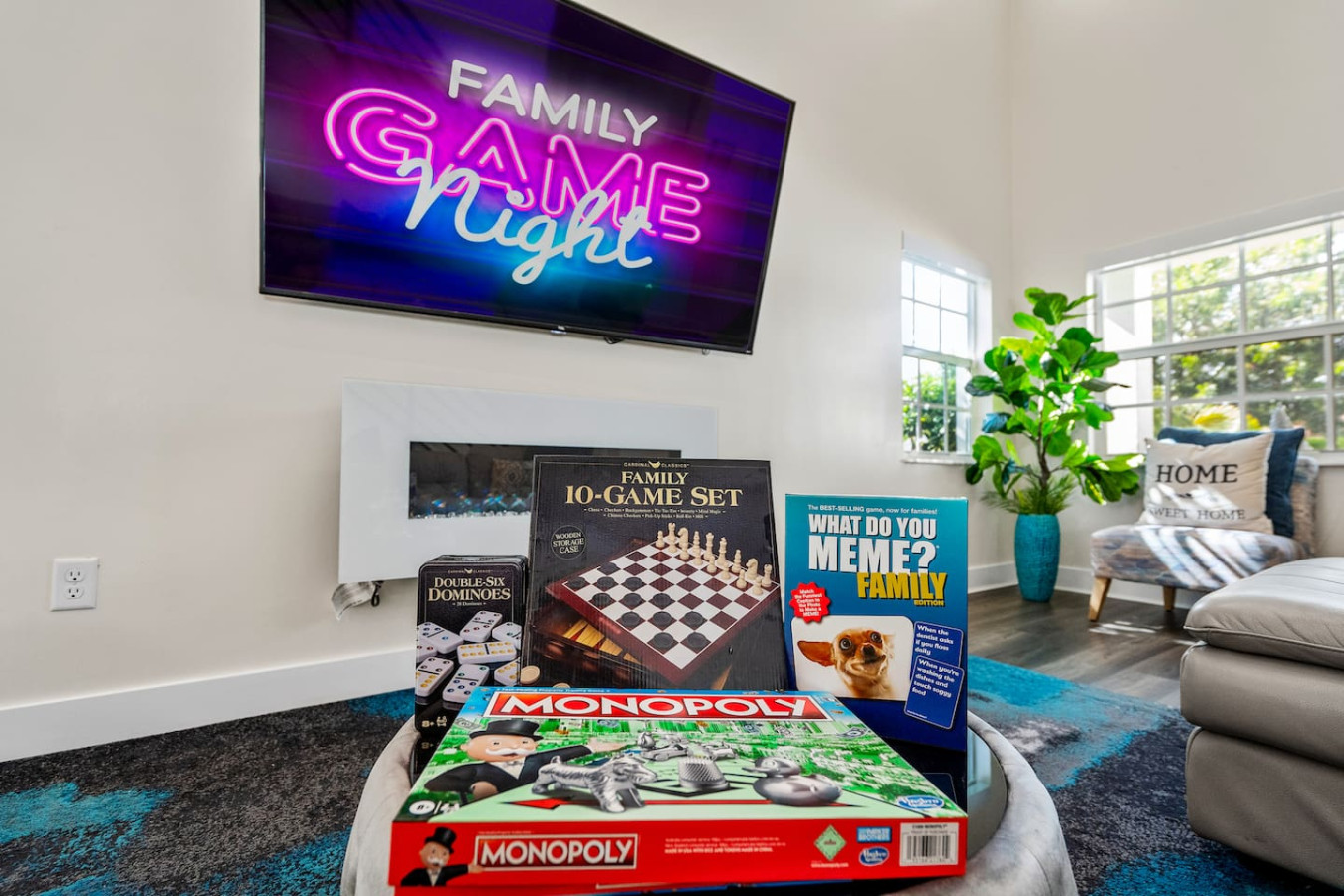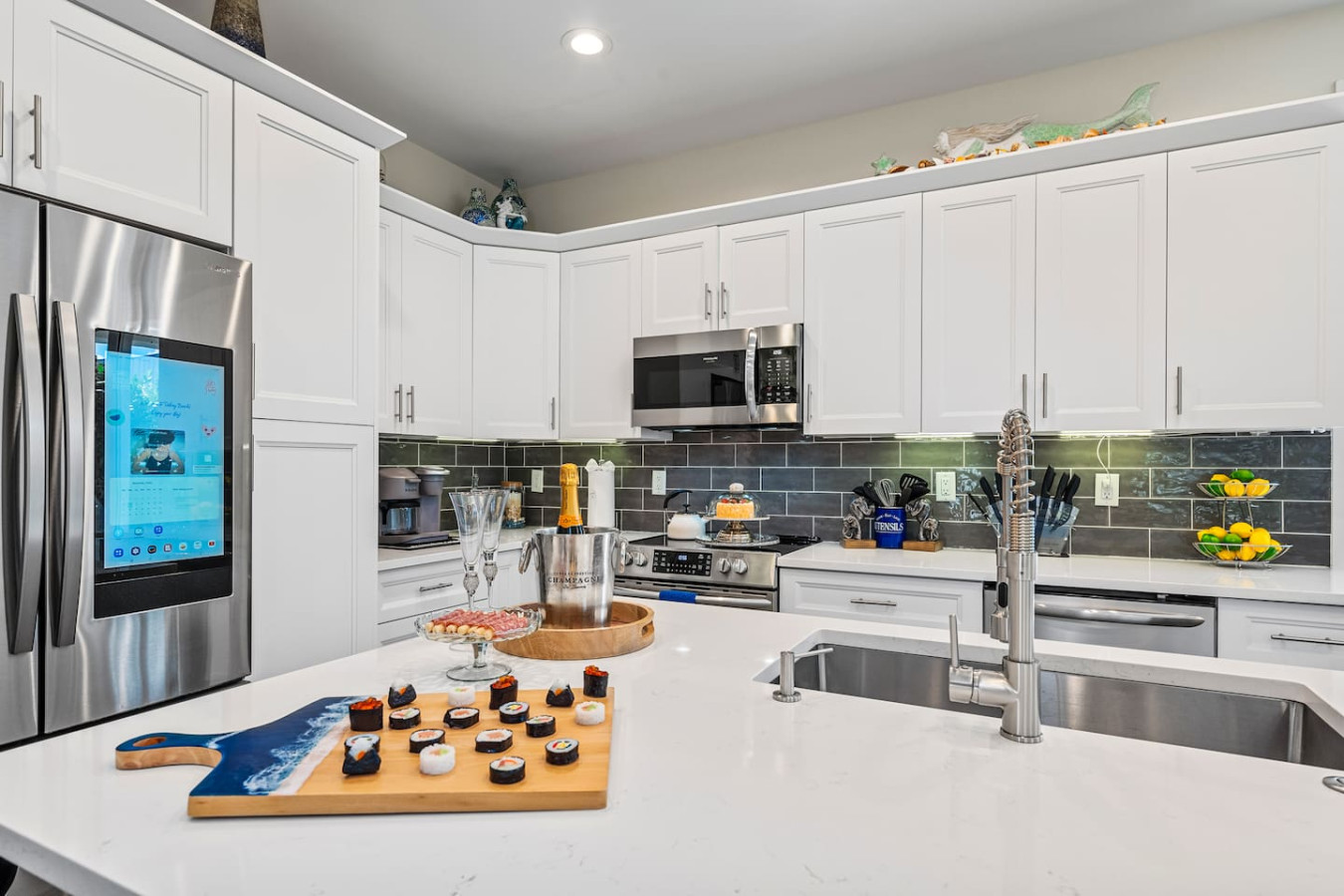 The kitchen is stocked well beyond basics β a smart fridge with a virtual whiteboard, pool towels, beach chairs, personal toiletries, disposable razors, board games, an iron and steamer, and dish and laundry supplies. Multiple guests have noted it's one of the most thoroughly stocked Airbnbs they've stayed in. A fully stocked bar cart with martini and wine glasses is ready when you arrive β something bachelorette and girls trip groups put to use immediately.