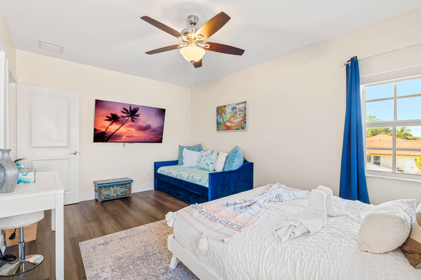 Bedroom 2 β Queen bed, Full size day bed + twin trundle bed, Smart TV