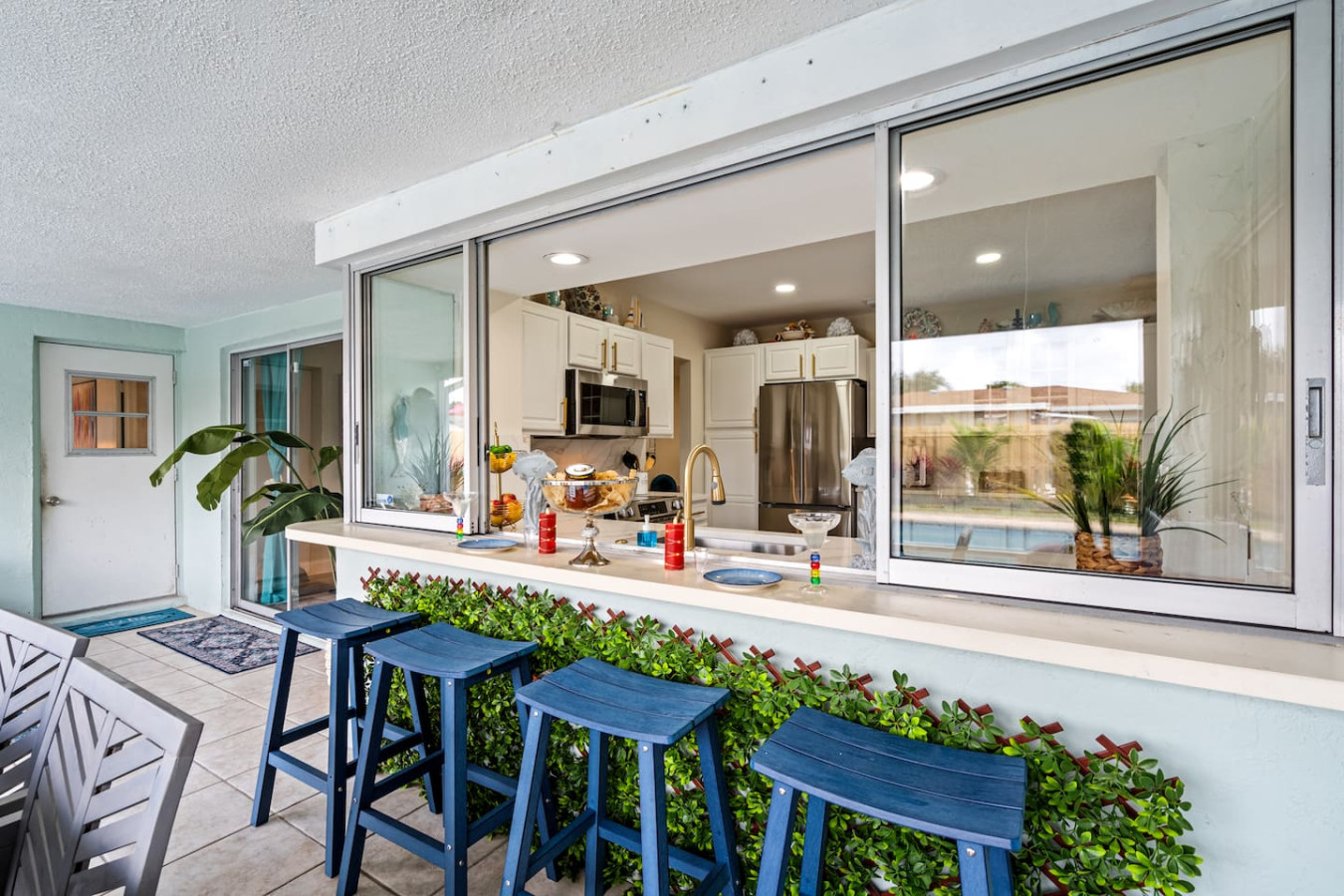 The screened lanai kitchen window is a specific detail that gets called out โ being able to pass food and drinks between the kitchen and lanai without losing the group energy is a small design detail that makes a big difference on a group trip. The ping pong table on the lanai has hosted tournaments. The pool has been used till late every night of multiple stays.