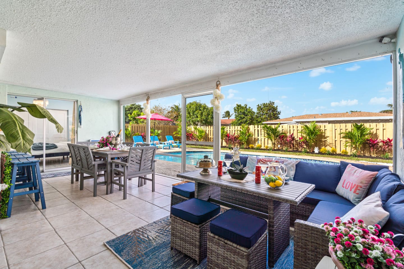 Boynton Beach is a quiet, safe, residential community โ guests consistently describe it as peaceful and private. It's not a neighborhood guests typically walk to restaurants or nightlife from, but Caloosa Park one block away gives the group easy outdoor access without a car. Atlantic Avenue and Delray Beach are 15 minutes south. The beach is a short drive. Boca Raton and West Palm Beach are both easy from here. The airport is straightforward to reach โ multiple guests have called out the easy access.