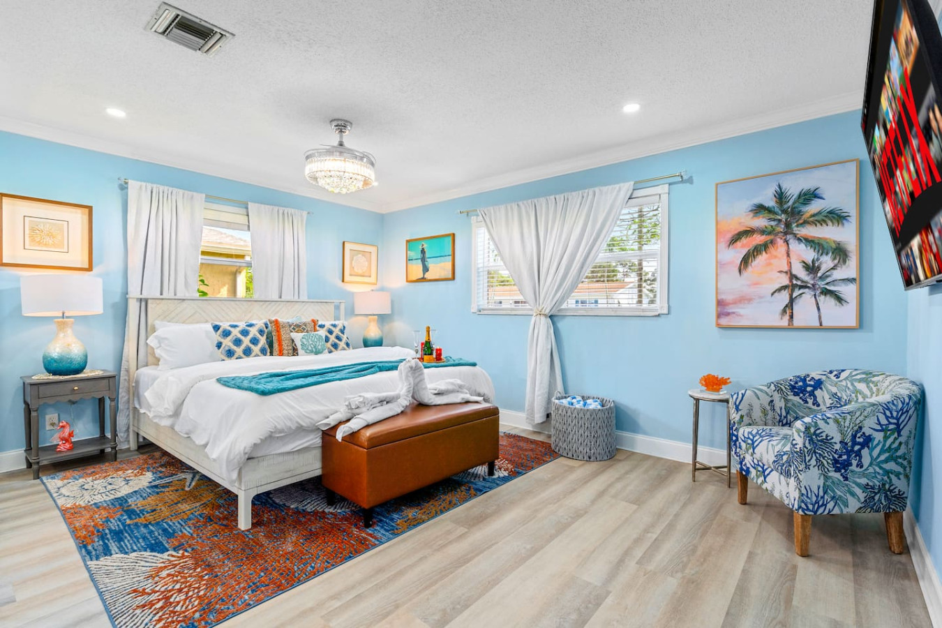 Primary suite โ King bed, ensuite bathroom, walk-in closet, Smart TV